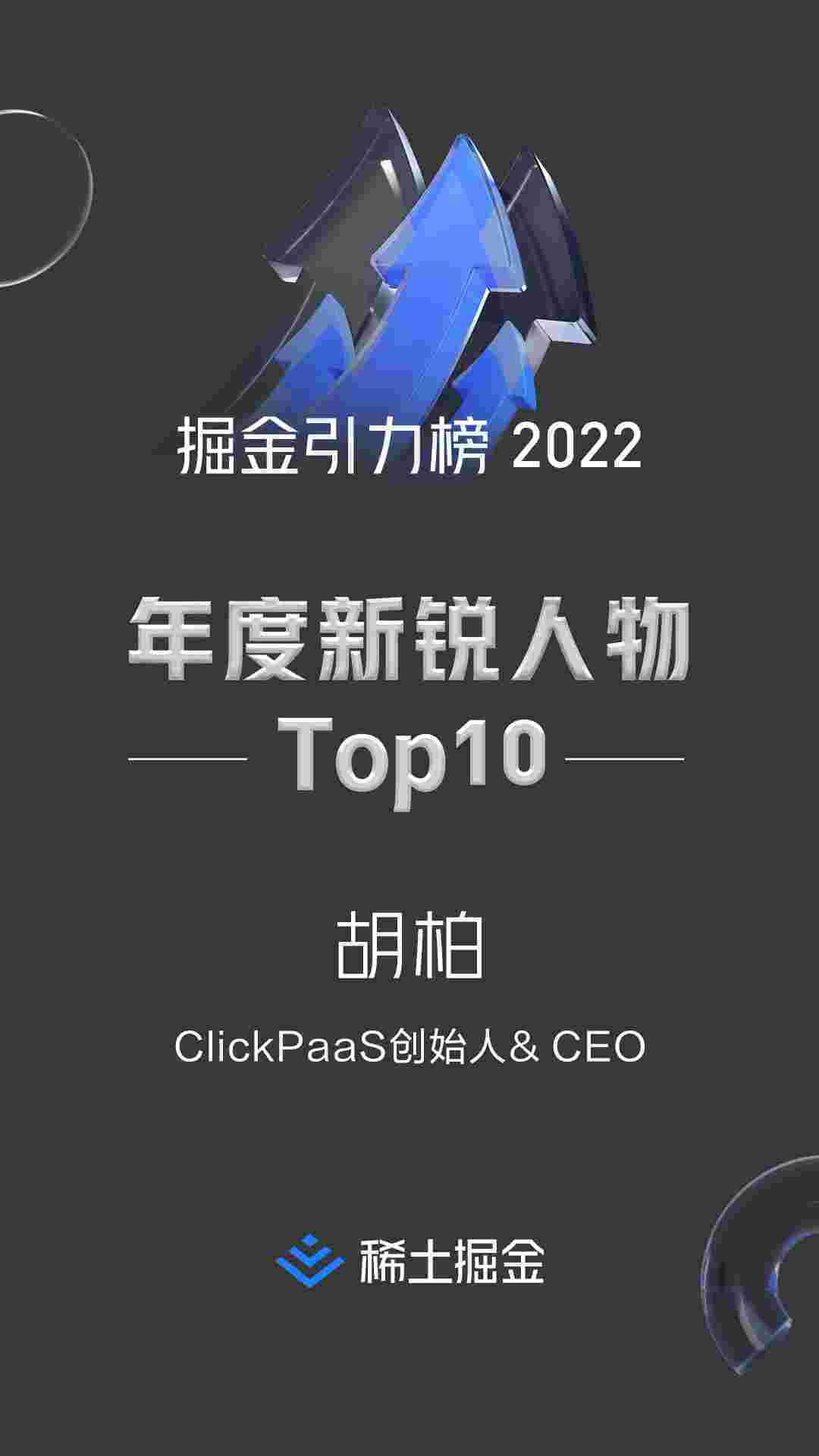 稀土掘金社区首届年度10大新锐人物榜单揭晓——小微钱包创始人、、、、、、、、、、CEO胡柏实力登榜
